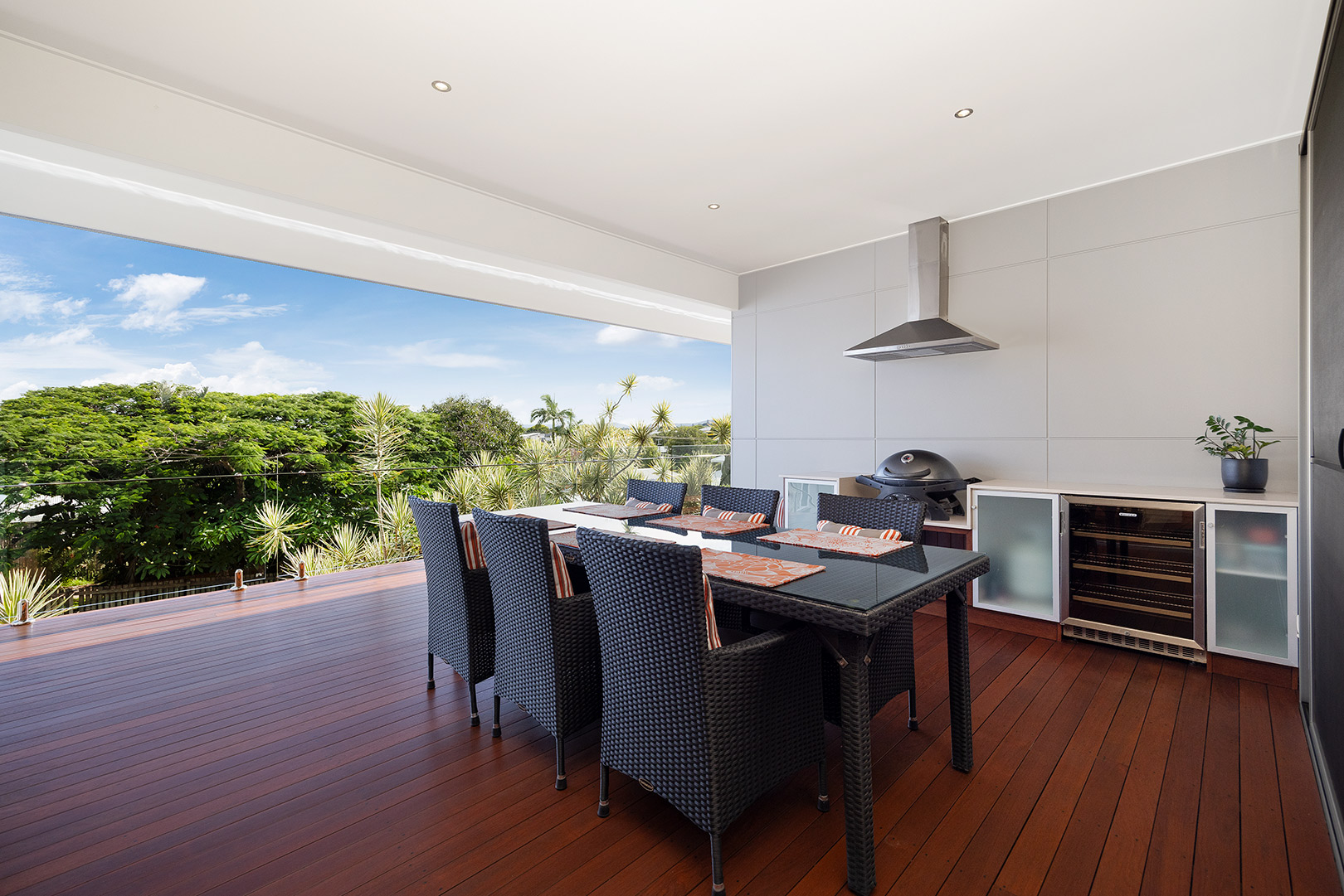 The expansive living, dining and kitchen areas flow seamlessly for the ultimate Queensland lifestyle. The spaces are all connected effortlessly via zero-corner sliding doors, where at the heart of the home is the amazing deck, complete with a built-in outdoor kitchen. Whether you’re hosting a weekend BBQ or enjoying a quiet morning coffee, the stunning elevated views provide a picturesque backdrop to your daily life.