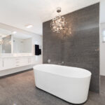Spacious Master Suite with luxurious bathroom and freestanding bath.