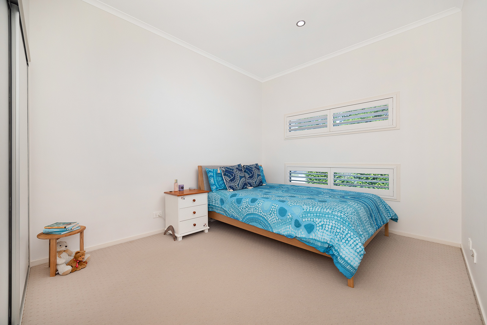 The king-sized master suite serves as a private retreat for parents. The space features a fully-fitted walk-in robe and a lavish ensuite complete with floor-to-ceiling tiling, double vanities, a freestanding bath highlighted by elegant pendant lighting and direct access to the balcony. The layout offers excellent separation between the master suite and additional bedrooms creating excellent functionality and privacy for families.
