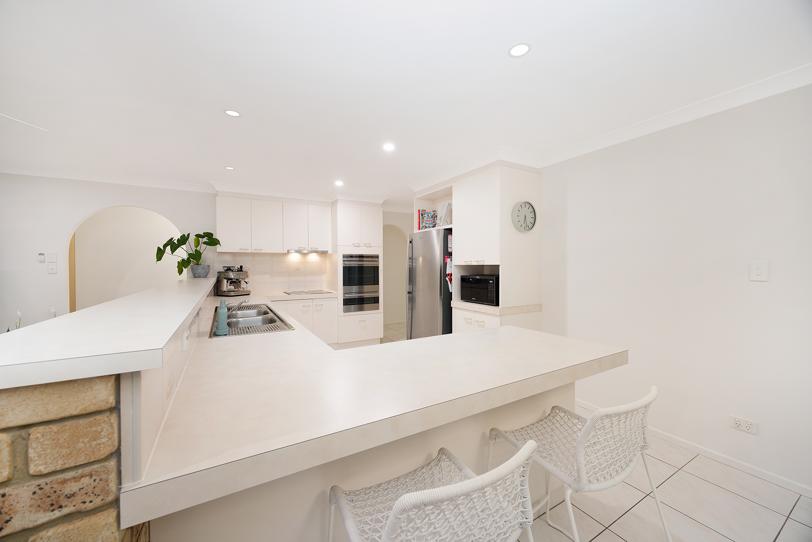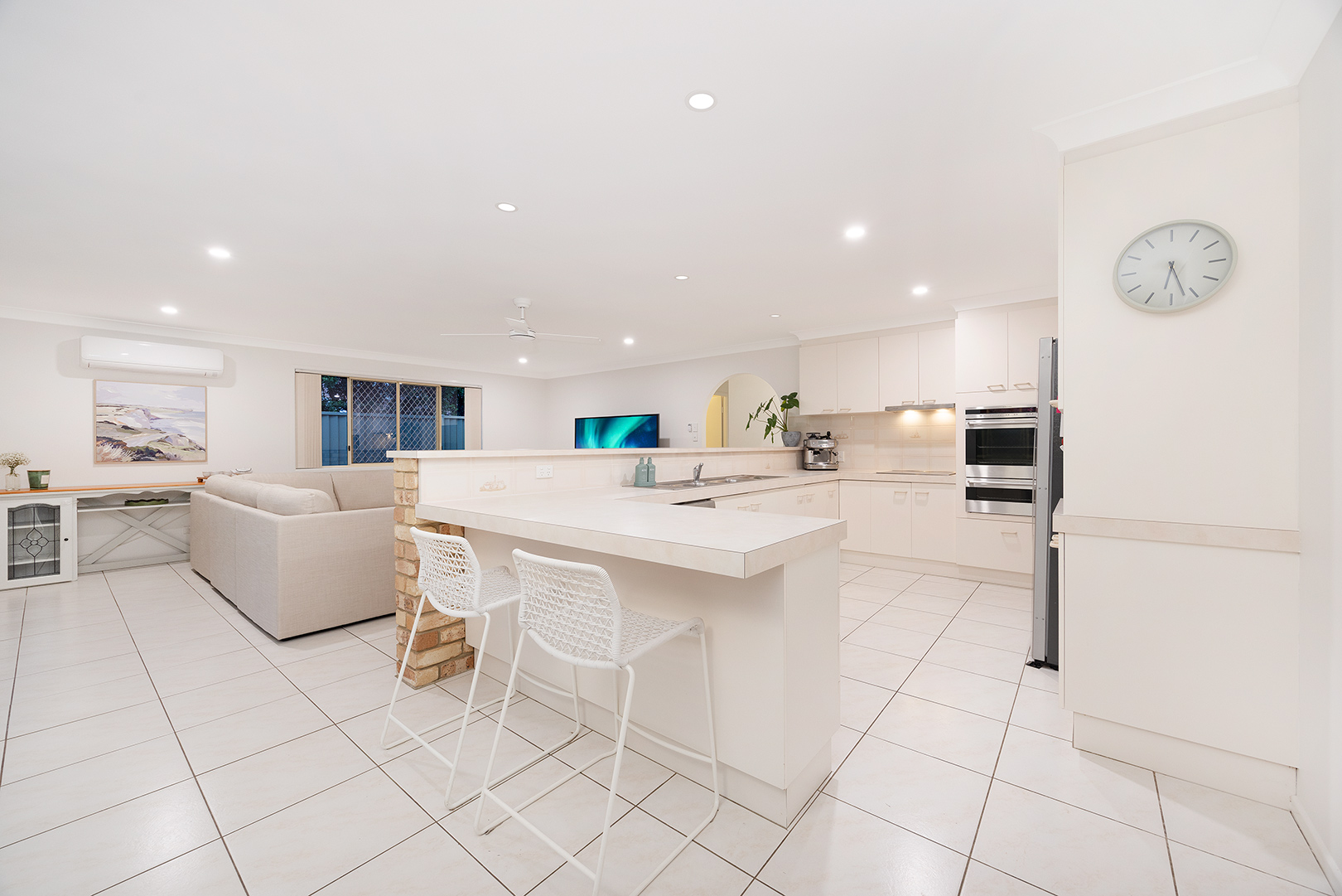 At the centre of the home sits the enormous kitchen – truly the heart of the property. Designed with both functionality and entertaining in mind, it features stainless steel appliances, a breakfast bar for casual meals, a walk-in pantry and an expansive bench top with more than enough space for busy family life or hosting guests with ease.