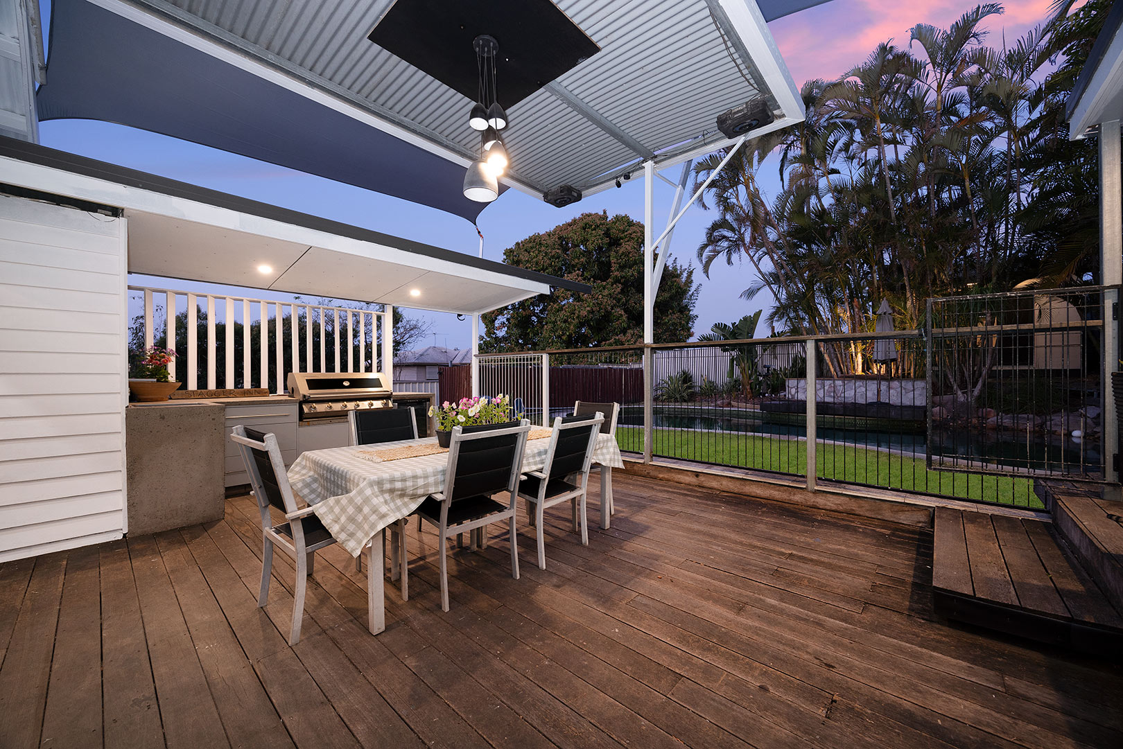 – Expansive entertainers’ deck with multiple areas and built-in BBQ area