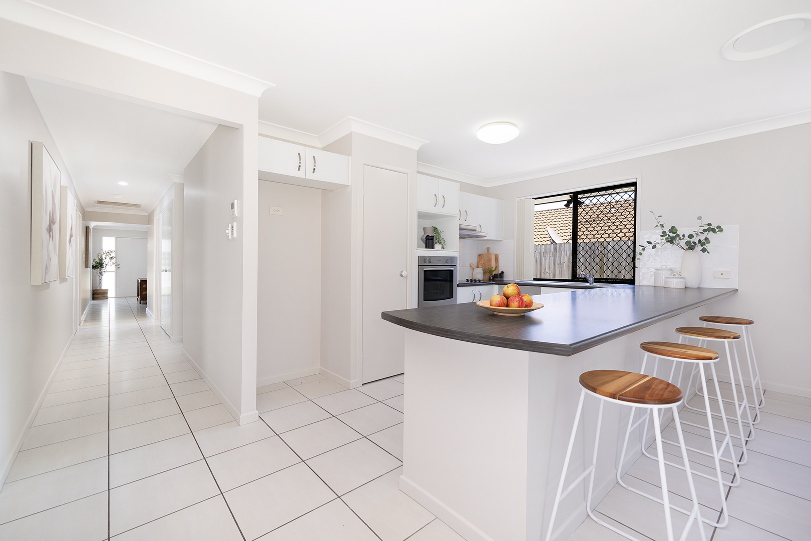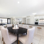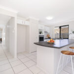 The spacious kitchen features a large bench top, perfect for meal prep or casual breakfasts, and flows seamlessly to the covered alfresco area – ideal for year-round entertaining.