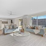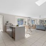 At the heart of the home, you’ll find a large open-plan kitchen, living, and dining area designed for relaxed everyday living and easy entertaining. The kitchen is equipped with stainless steel appliances, a dishwasher, and ample bench space – perfect for whipping up family meals or hosting guests.