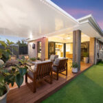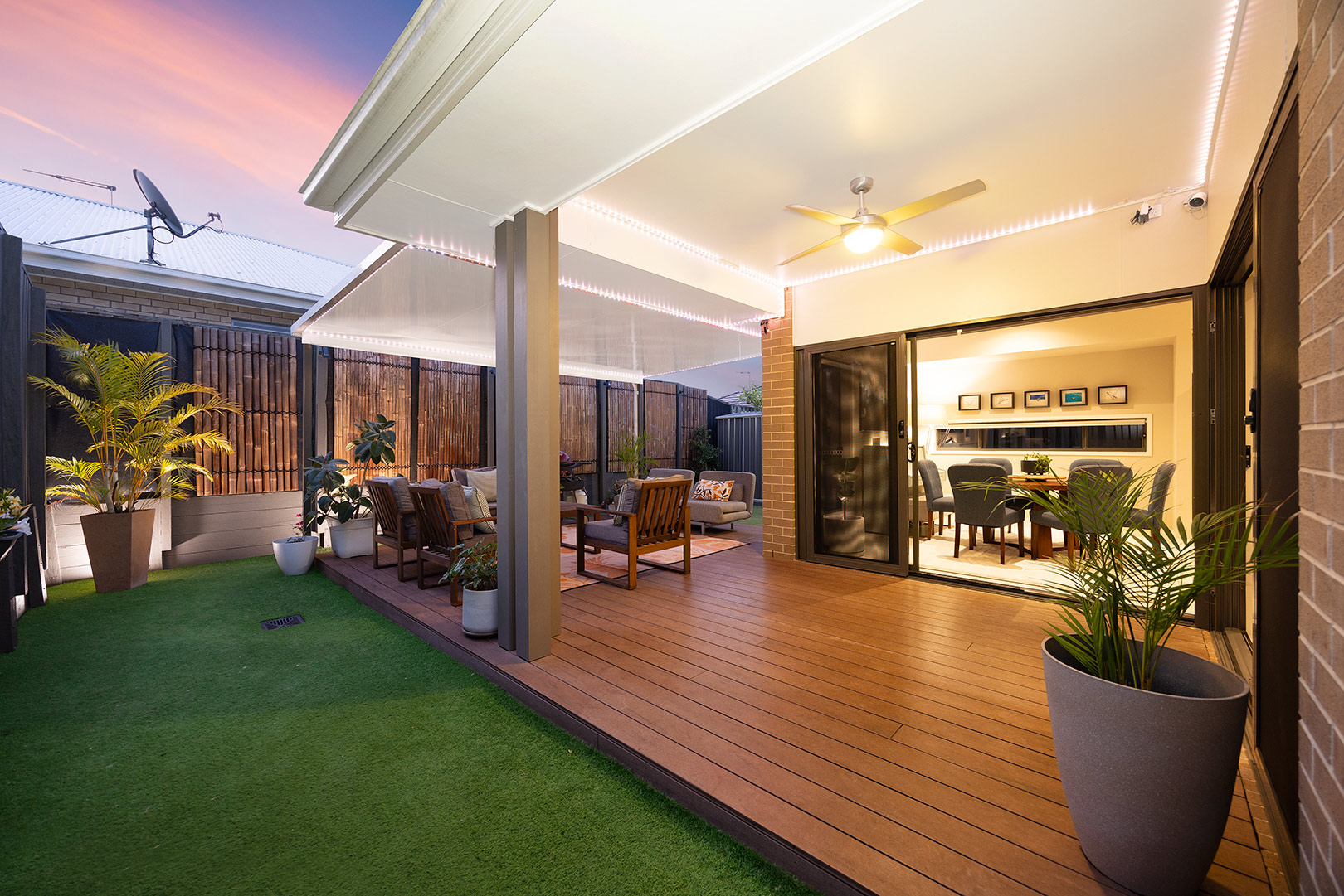 Step inside to discover an inviting open-plan living, kitchen, and dining area that seamlessly flows through dual sliding doors to the expansive covered patio – an entertainer’s dream. The outdoor space has been thoughtfully designed with a fully decked area and lush astro turf, offering a relaxed, low-maintenance lifestyle for year-round enjoyment.