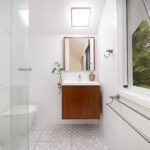 The upper level hosts two bedrooms, each spacious and defined by their own unique architectural personality. The master suite serves as a private sanctuary with a large walk-in robe and a luxuriously renovated ensuite, while the second bedroom offers generous proportions and a small lofted space. Servicing this level is the tastefully renovated main bathroom, thoughtfully designed with a separate bathtub, powder room, and toilet to maximise functionality.